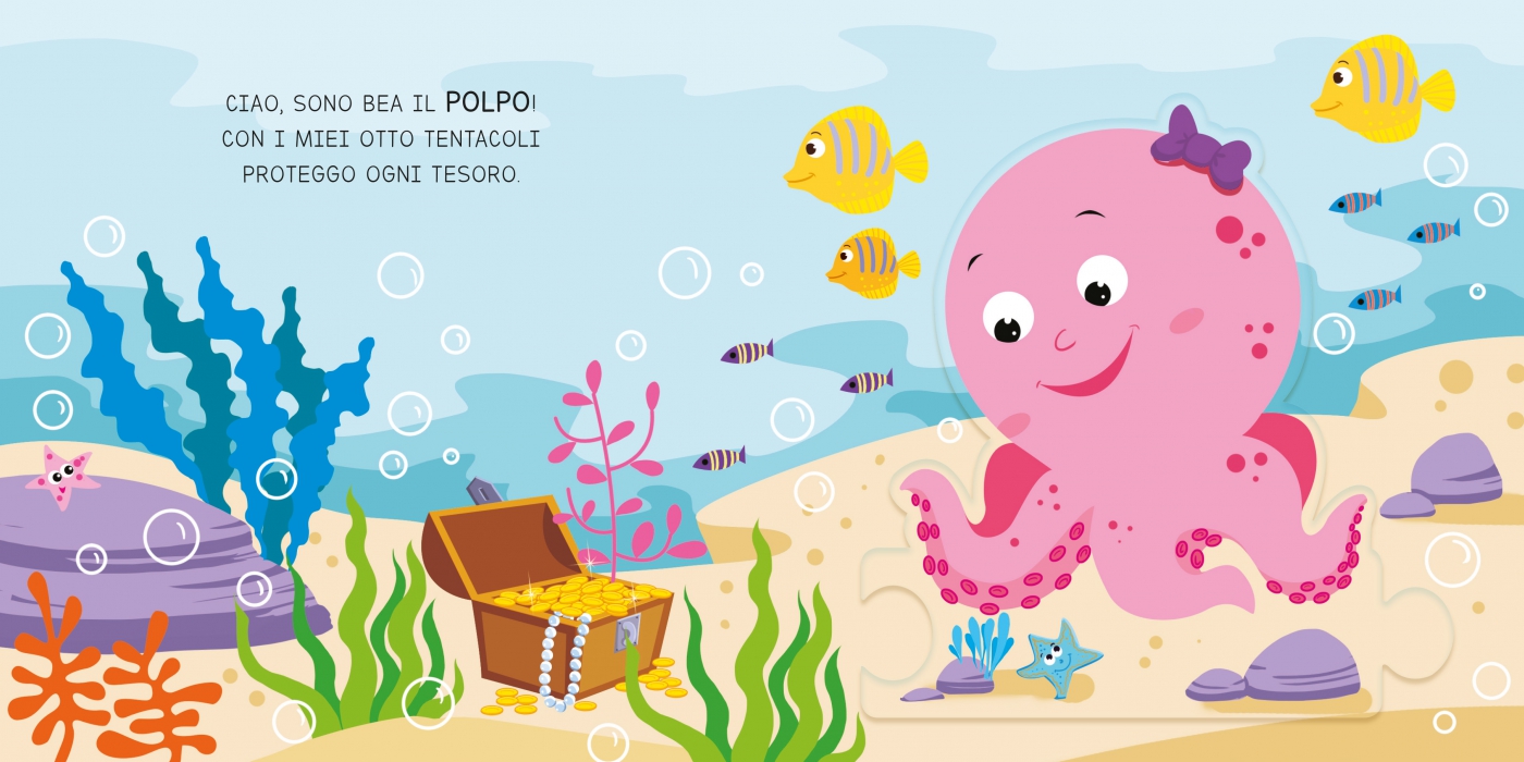 ContenutoScopri le storie di questi animali del mare e incastra le tessere come più ti piace per completare un bellissimo puzzle.